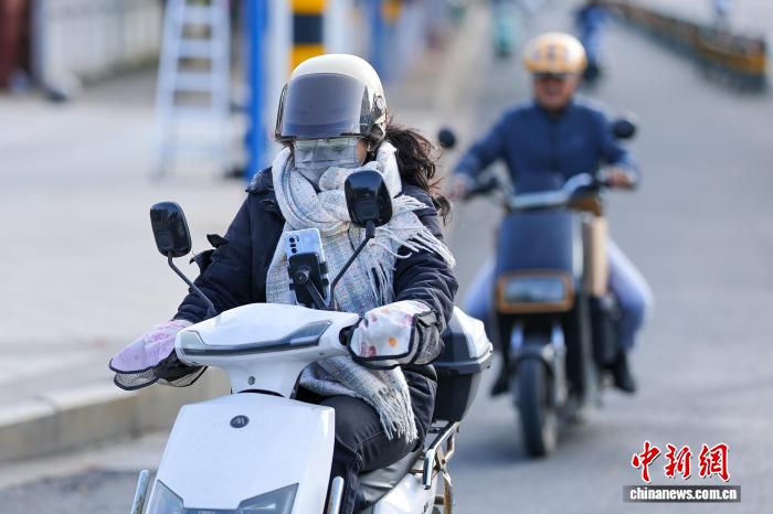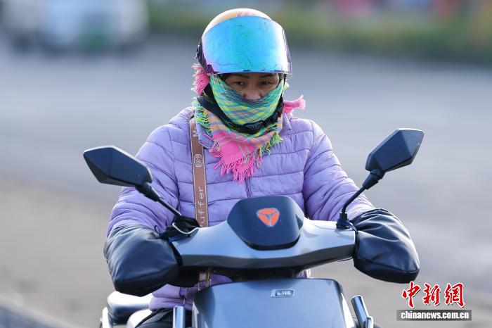 1月7日,海北海心,市平易近脱冬衣出止。中新社记者 骆云飞 摄